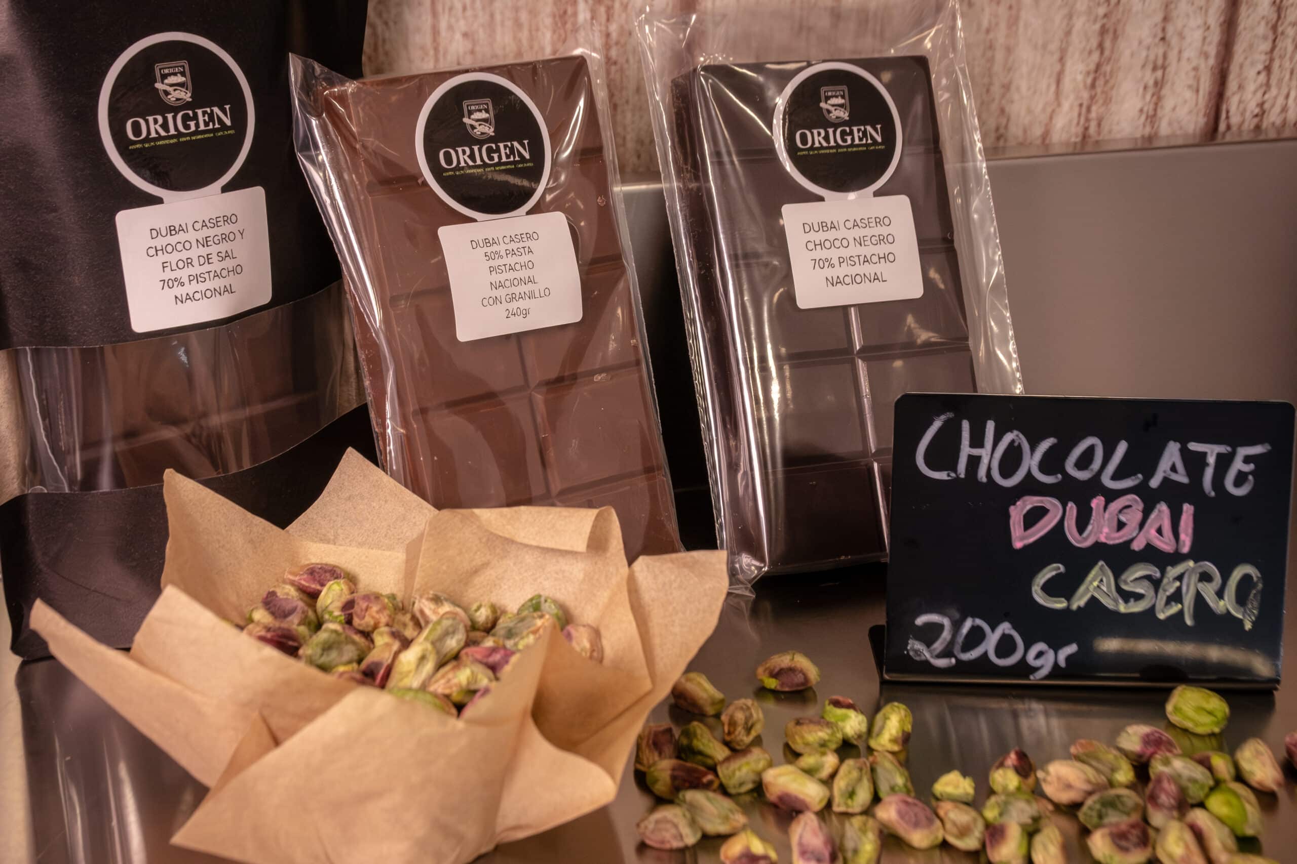 Semanalmente realizamos nuestras elaboraciones de Chocolate Dubái, con crema de pistacho nacional de máxima calidad, crema que se obtiene mediante un proceso en frio, obteniendo asi el máximo sabor a pistacho y manteniendo todas sus propiedades naturales. Nosotros tostamos el fideo Kadaifi con un poco de mantequilla de calidad y cercanía, y aceite de oliva virgen extra. Todos los productos utilizados para la elaboración son de máxima calidad, por lo tanto el resultado no puede ser mejor.
