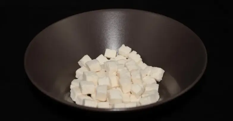 Coco deshidratado en dados con azucar.